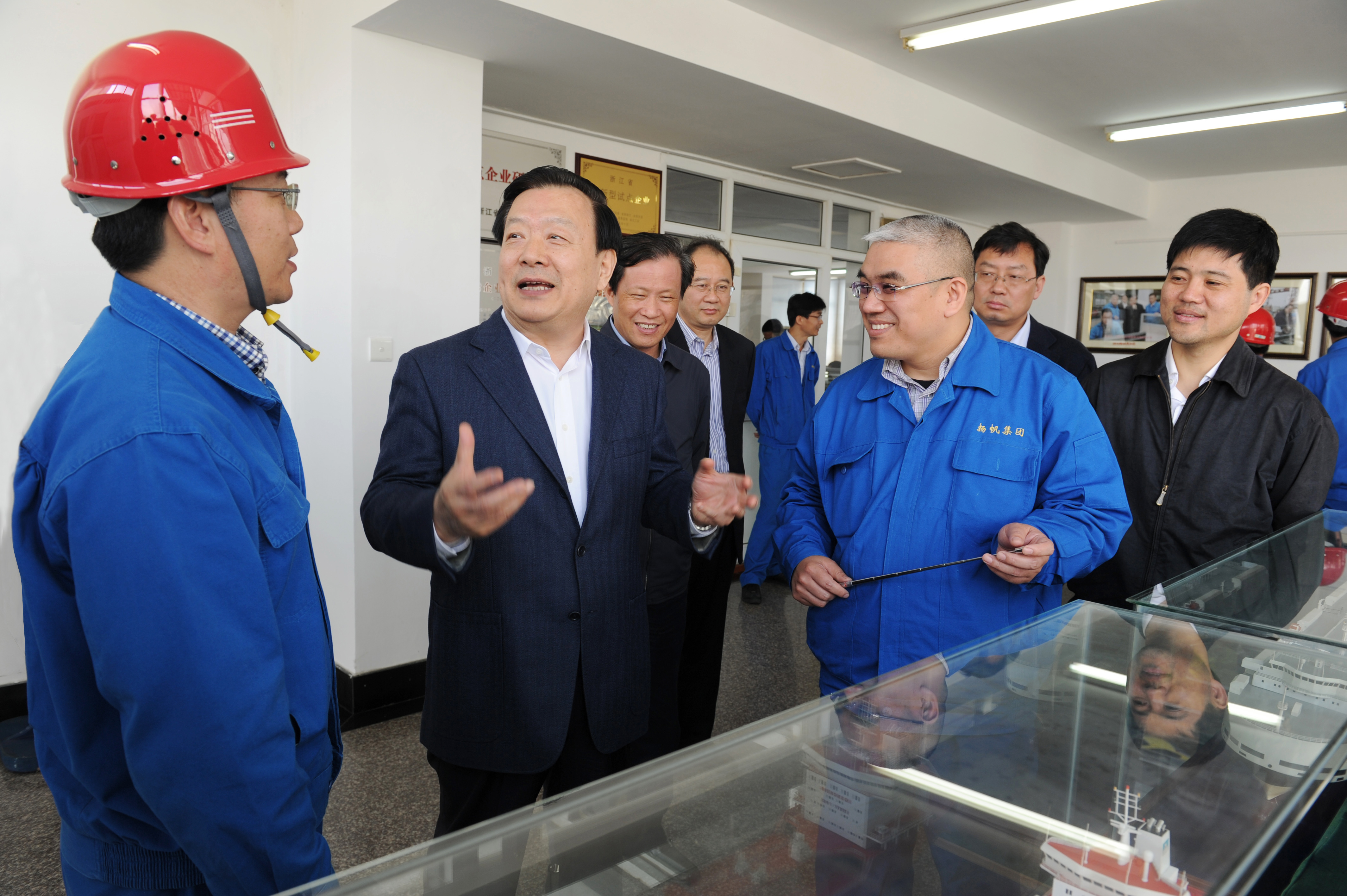 2015年4月2日,浙江省省委書記、省人大常委會主任夏寶龍一行來司調研。省委秘書長趙一德,副省長、市委書記孫景淼,省政協副主席湯黎路等陪同。揚帆集團董事長、總裁李明東,集團總裁助理蔡輝華就生產經營、企業轉型、技術創新等工作分別進行了匯報。